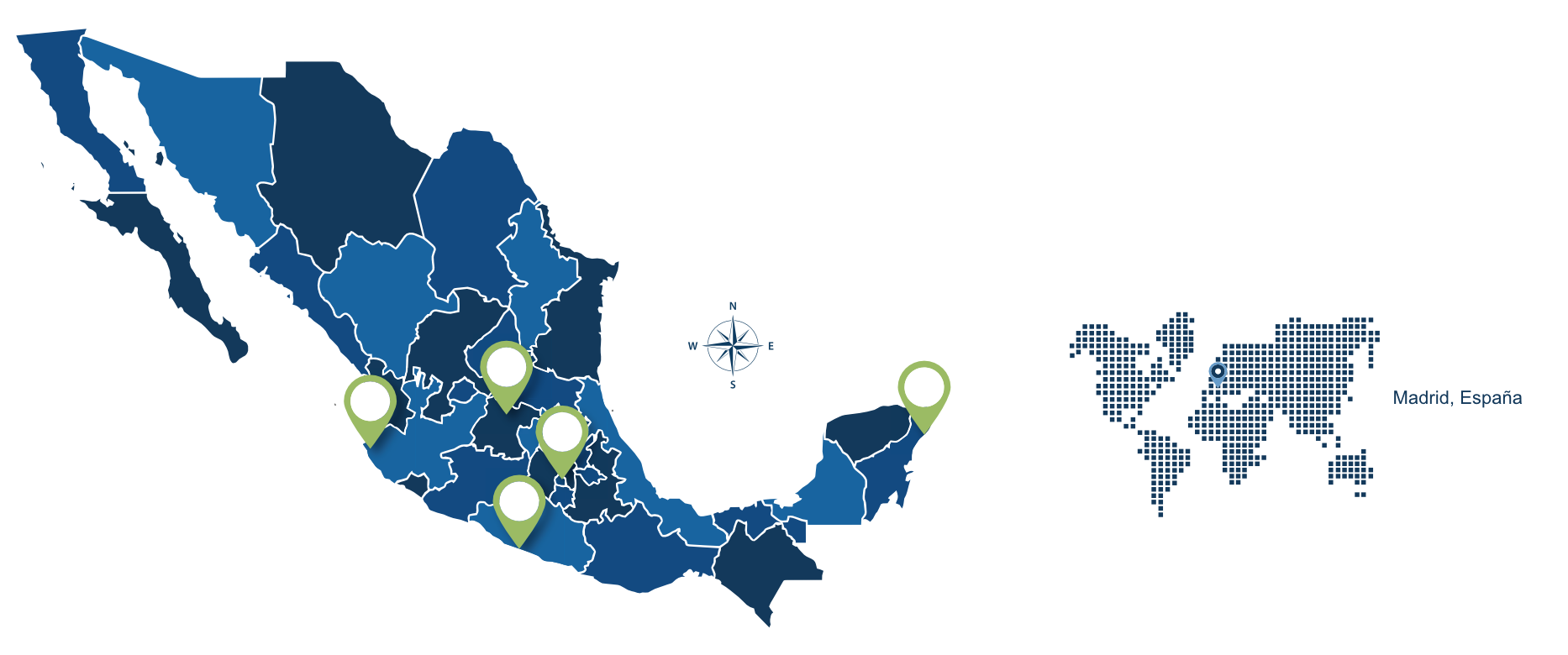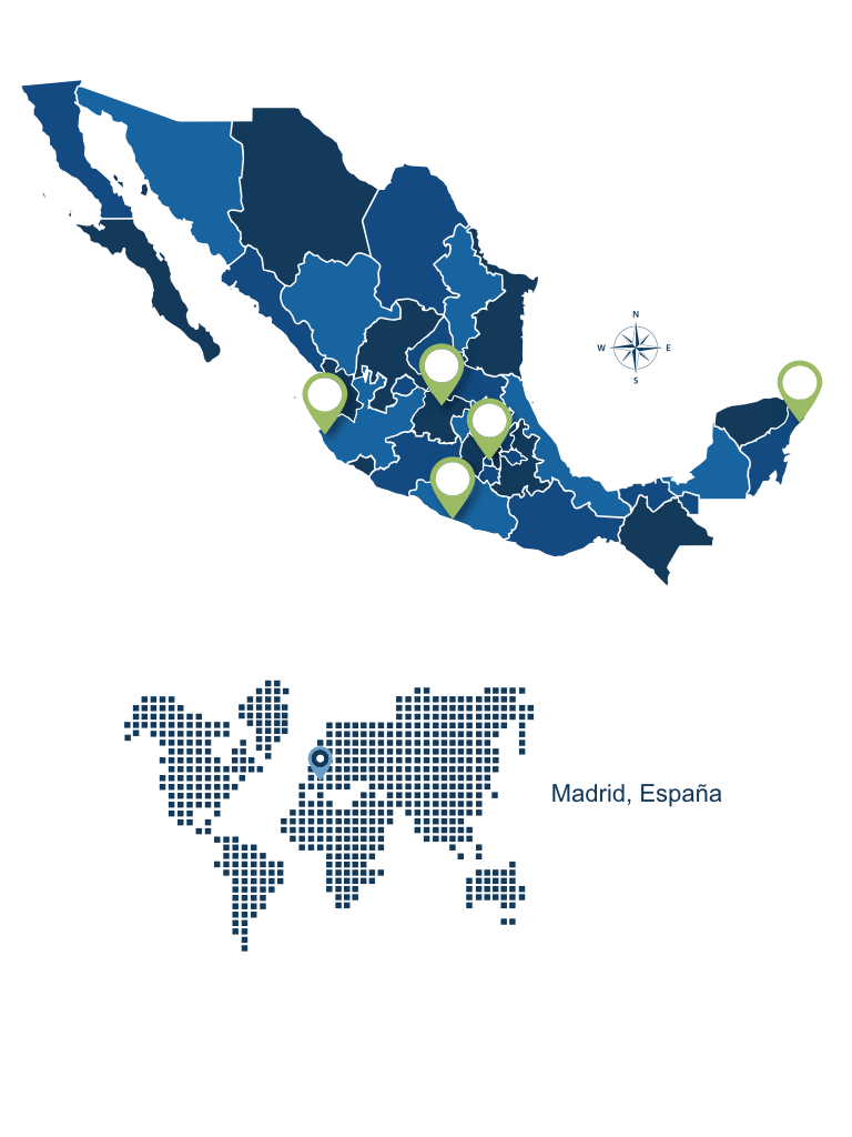 Operamos en puntos estratégicos de la República Mexicana, como Cancún, Acapulco, León, Puerto Vallarta y Ciudad de México y contamos con presencia internacional en Madrid, llevando nuestra experiencia y capacidad operativa a donde su proyecto lo requiera.